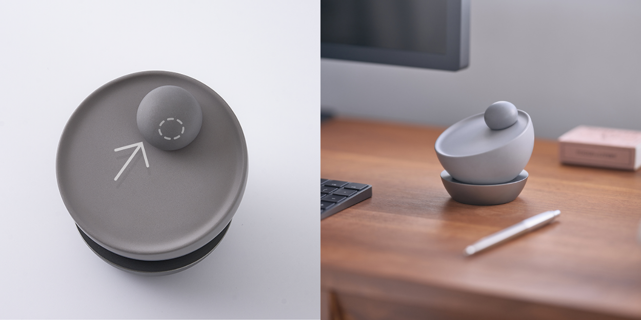 アロマを垂らした後、擦り石で丸く円を描くように擦り広げてください。aroma stone本体の角度が調整できるデザインで、本体の決まった場所に磁石がついているため、角度がついても擦り石が固定されるようになっています。サイズ:約Φ85×80mm 重量:約520g